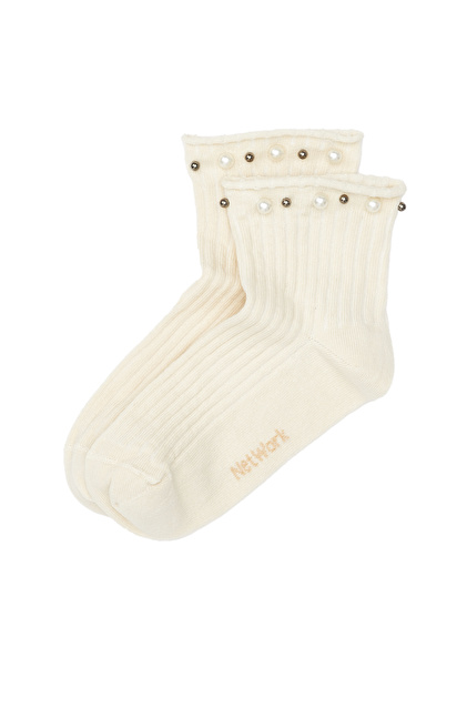 Düz Renk; İnci Detaylı; Örme Çorap