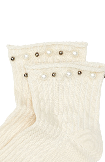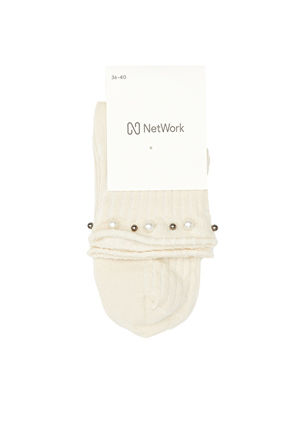 Bej İnci Detaylı Kadın Çorap