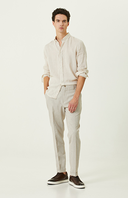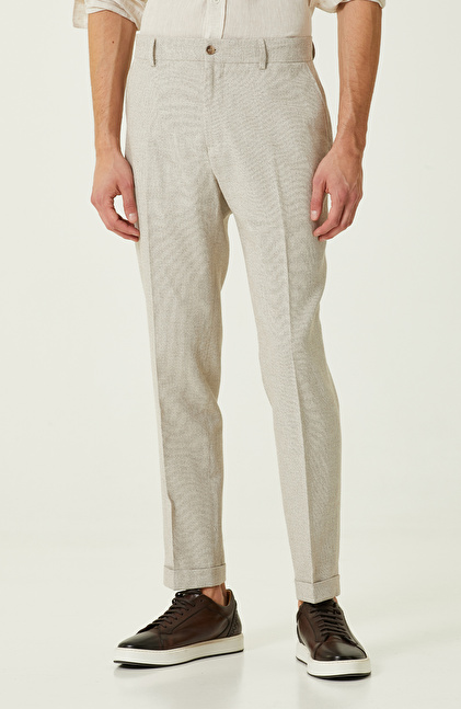 Bej Jakarlı Pantolon