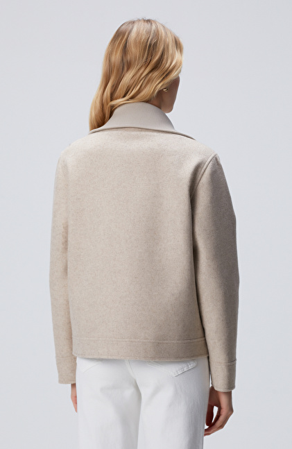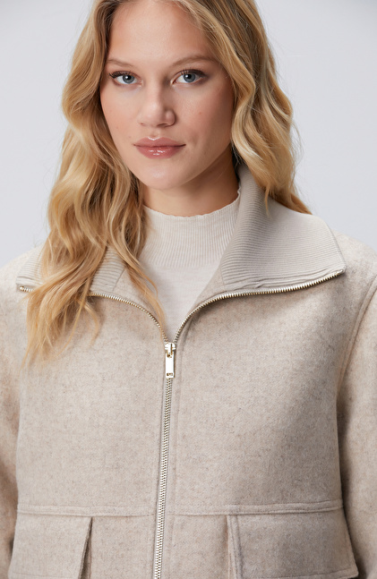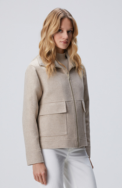 Bej Kapak Cep Detaylı Kaşe Mont