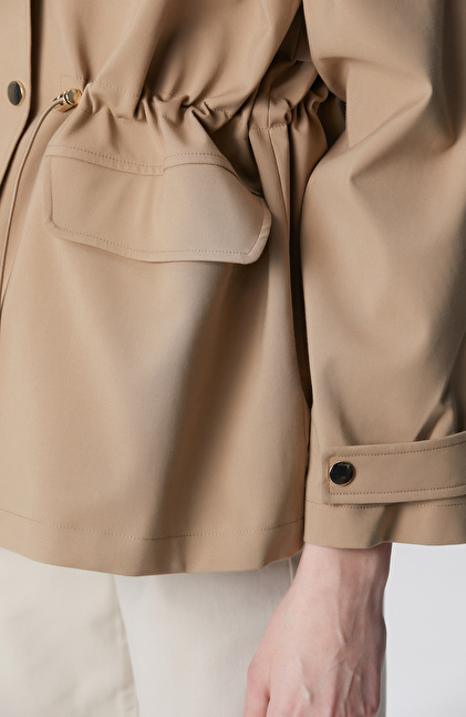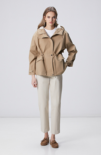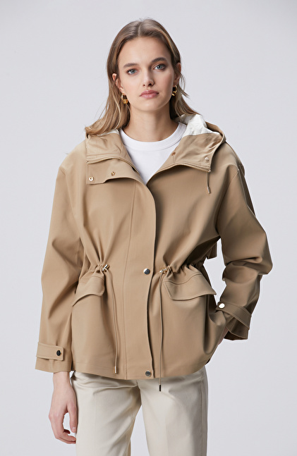 Bej Kapüşonlu Mont