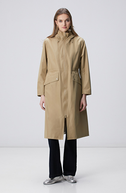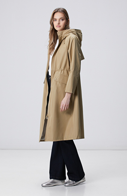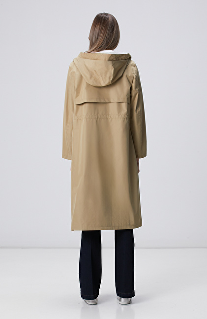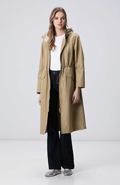 Bej Kapüşonlu Pardesü