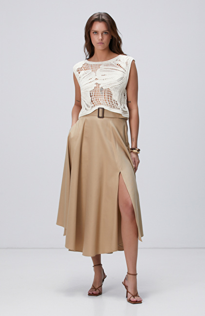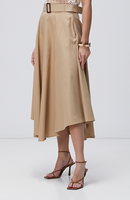 Bej Kemerli Midi Etek