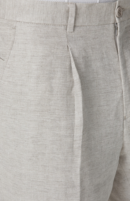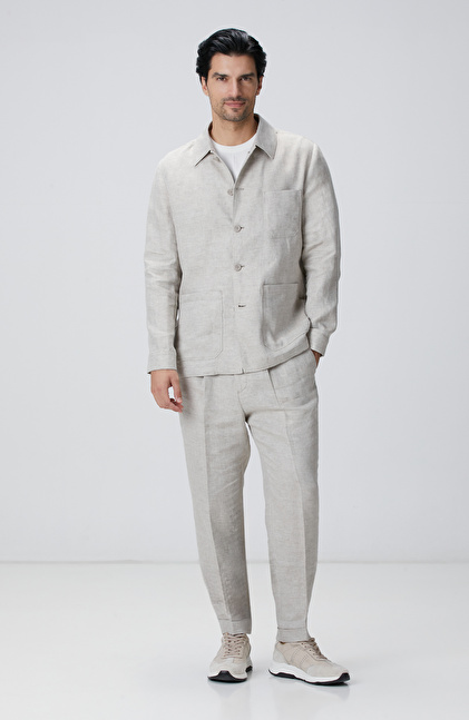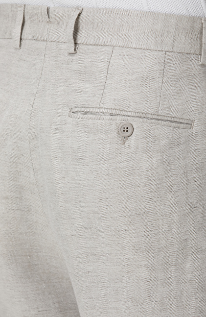 Bej Keten Comfort Fit Pantolon
