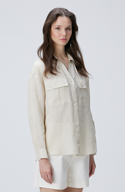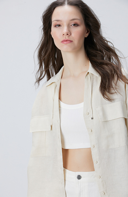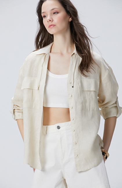 Bej Keten Gömlek