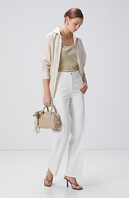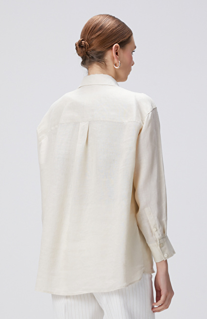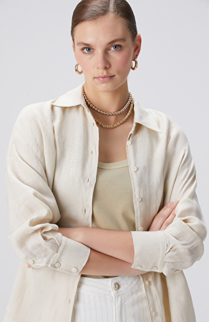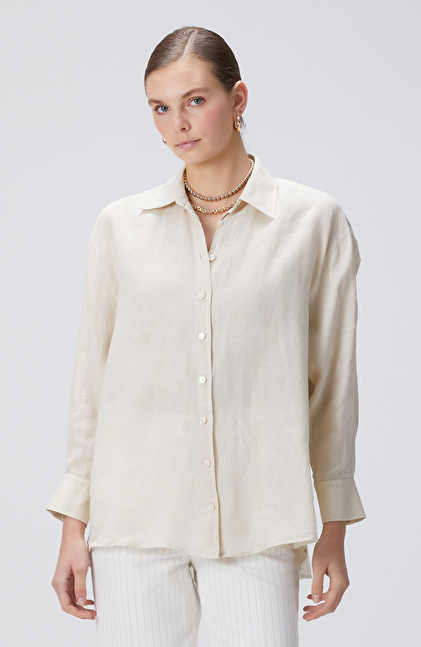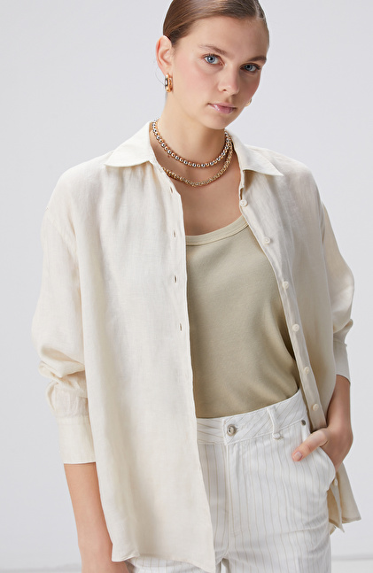 Oversize Fit; Gömlek Yaka; Uzun Kol; Keten Gömlek