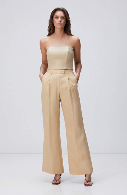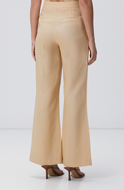 Regular Fit; Normal Bel; Düz Paça; Dokuma Keten Pantolon; Yan Cepli