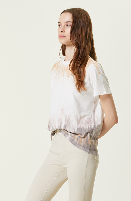 Bej Kısa Kollu Bisiklet Yaka Batik T-shirt