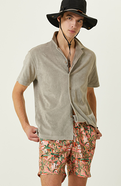 NetWork yaz koleksiyonunda yer alan Bej Kısa Kollu Comfort Fit Gömlek, şık duruşuyla dikkatleri üzerinde toplar. NetWork Casual çizgisindeki model, poplin kumaşı ve yüksek oranda pamuk içerdiği için oldukça rahat bir yapıya sahiptir. Apaş yakası sayesinde trendleri kendi stiline uygulamaktan hoşlanan kişilere hitap eder. Ürün, NetWork’ün şık ve rahat görünümünü yansıtırken şehirli bir duruş sunar. Beach Wear stilindeki gömlek, penye kumaşı sayesinde sıcak yaz dönemlerinde konfor sunar. Ürünü renkli şort ve siyah sandaletlerle kombinleyerek tatillerde şıklığınızı koruyabilir, şapkayla kullanarak tarzınızı dilediğiniz gibi yansıtabilirsiniz.
