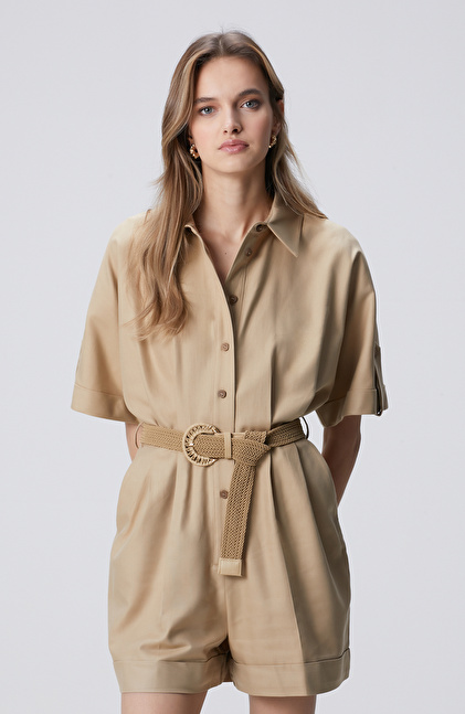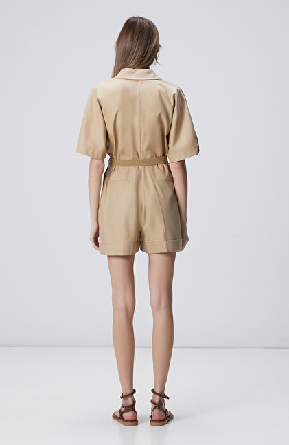 Bej Kısa Kollu Tulum