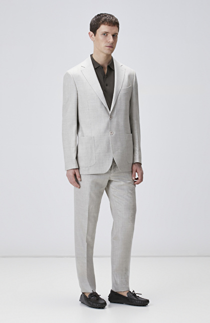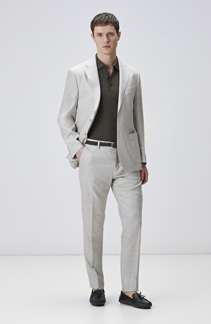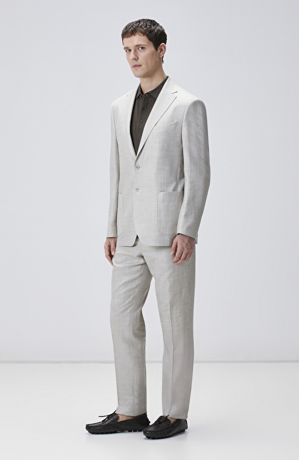 Slim Fit; Mono Yaka; Yün İpek Karışımlı Takım Elbise; Normal Bel; Düz Paça; Aplike Cepli; Limited; Loro Piana Kumaşından Üretilmiştir