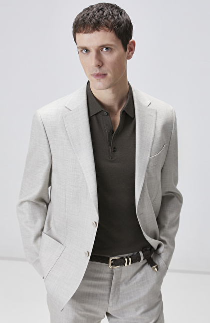 Bej Limited Loro Piana Kumaşından Üretilen Yün İpek Karışımlı Takım Elbise
