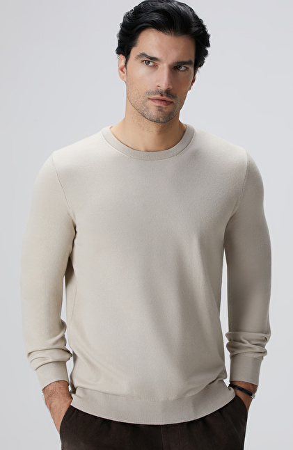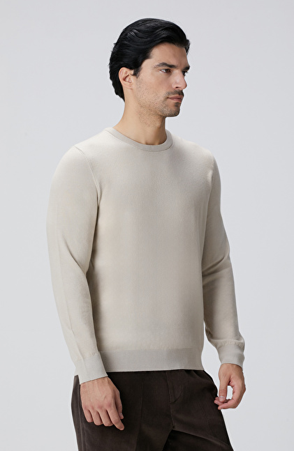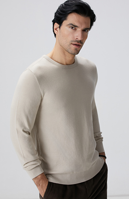 Slim Fit; Bisiklet Yaka; Uzun Kol; Düz Renk; Basic Triko Kazak