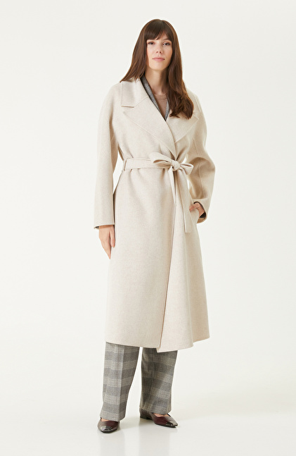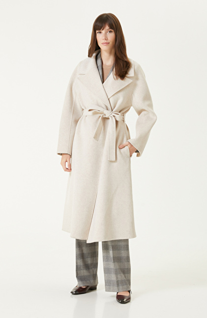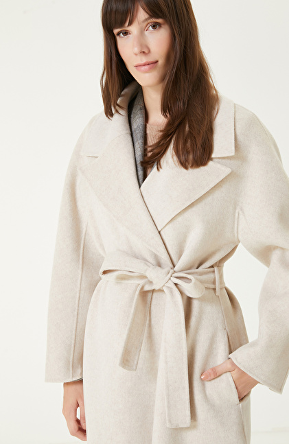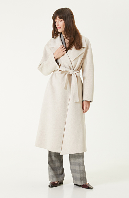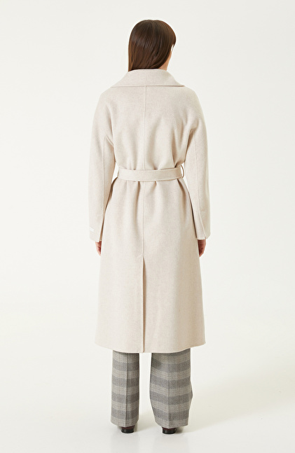 Bej Melanj Dikişsiz Handmade Yün Manto