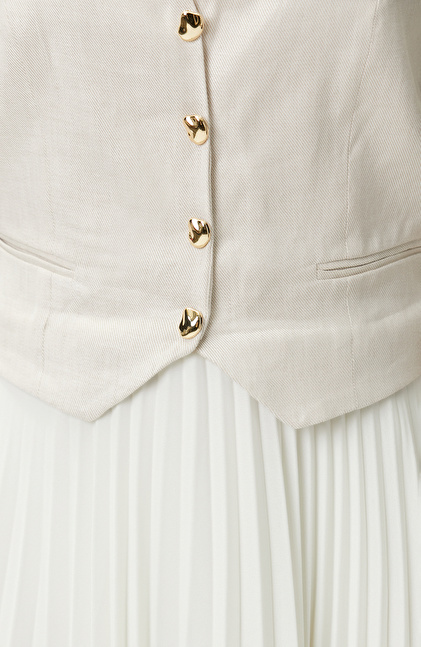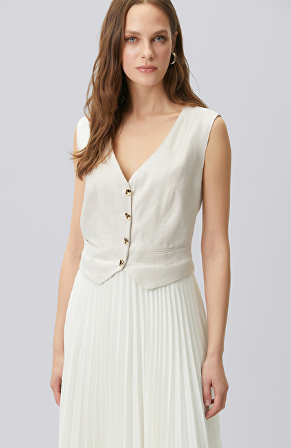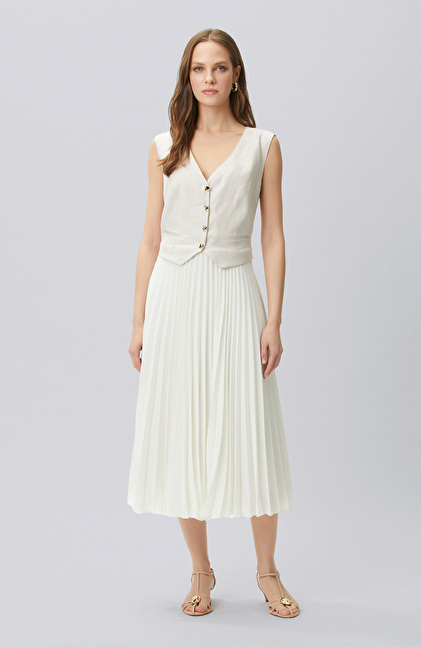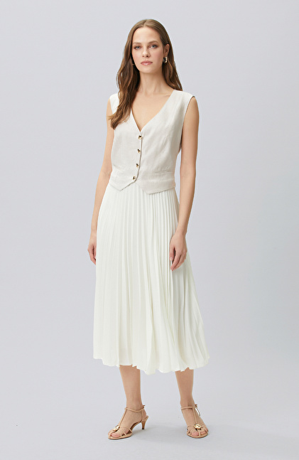 Regular Fit; V Yaka; Kolsuz; Midi Boy; Dokuma; Keten Elbise; Yüksek Bel; Piliseli; Fleto Cepli