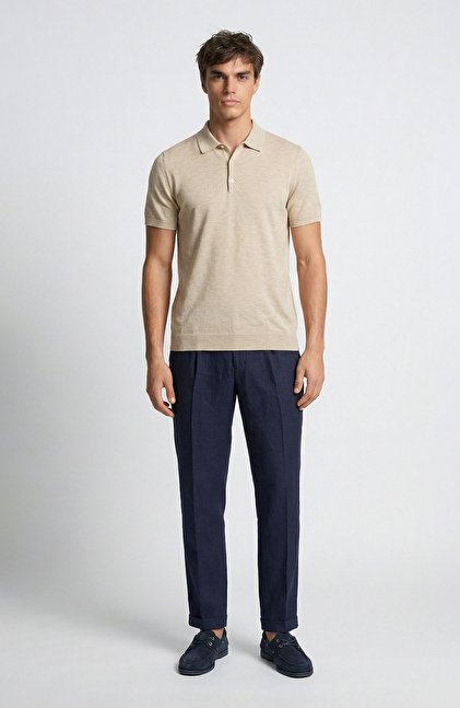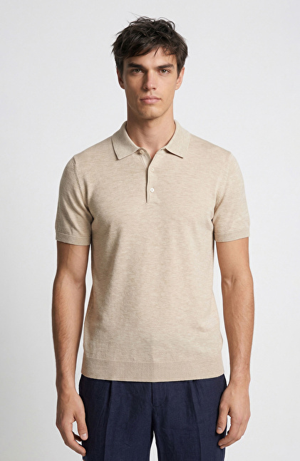Bej Melanj Polo Yaka Basic Triko Kazak