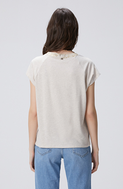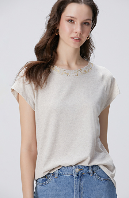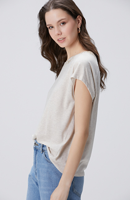 NETWORK Casual Bej Melanj Varak Baskılı T-shirt