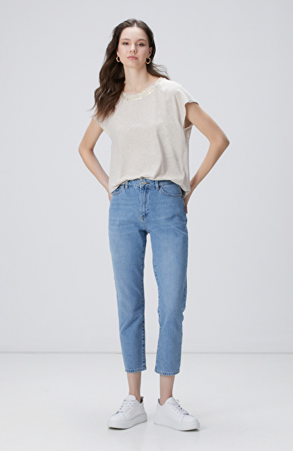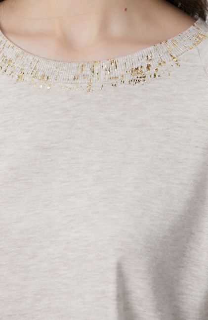 Regular Fit; Bisiklet Yaka; Düşük Kol; Varak Baskılı T-Shirt