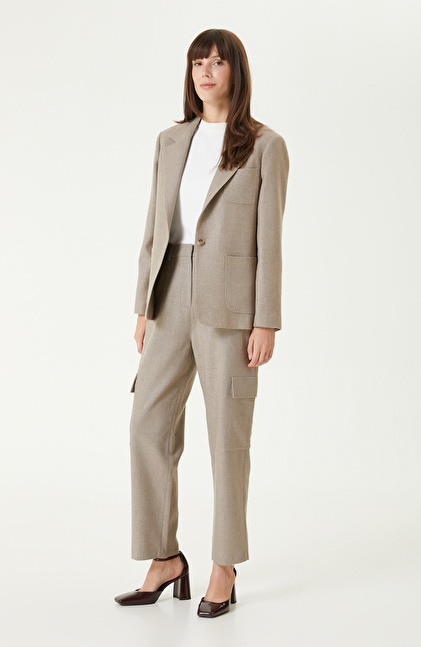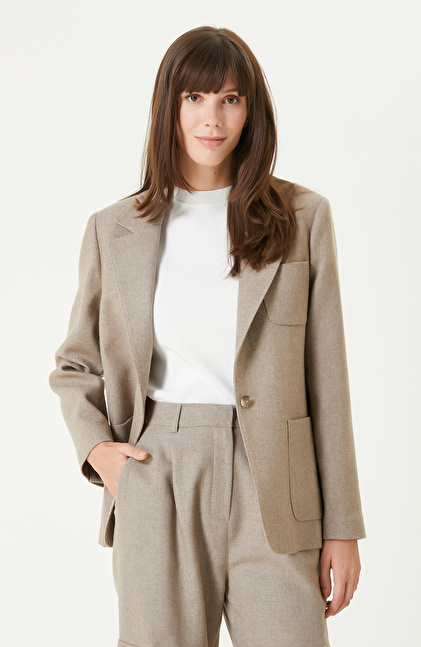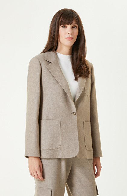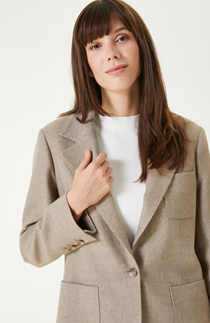 Bej Melanj Yün Karışımlı Ceket