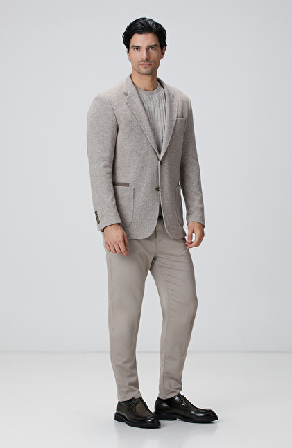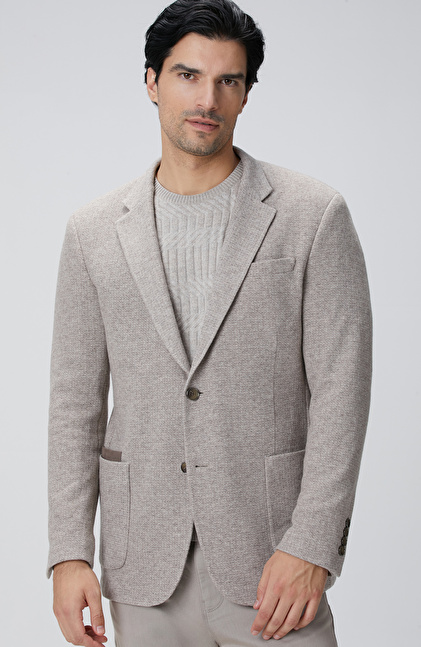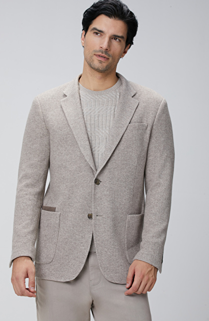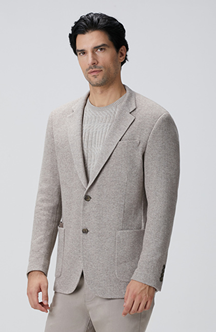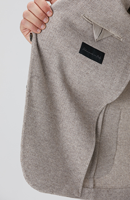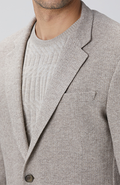 Bej Melanj Yün Karışımlı Ceket