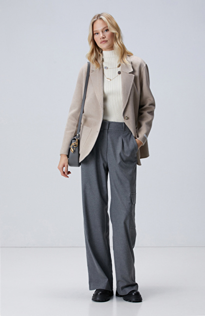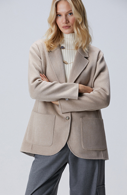 Regular Fit; Ceket Yaka; Dikişsiz; Çift Taraflı; Yün Karışımlı Handemade Ceket