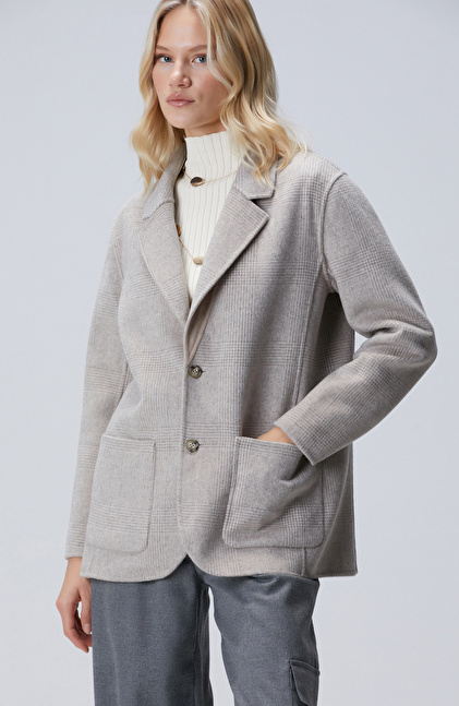 Bej Melanj Yün Karışımlı Handmade Ceket