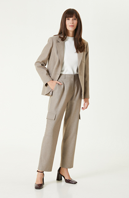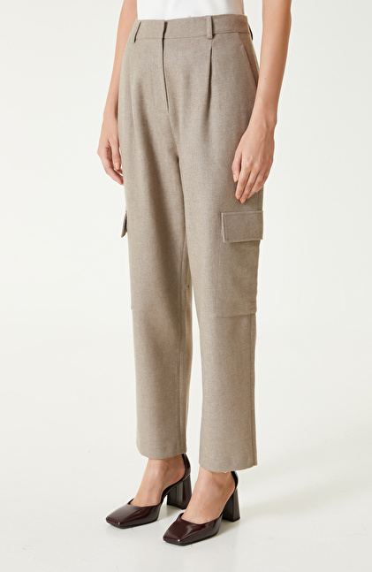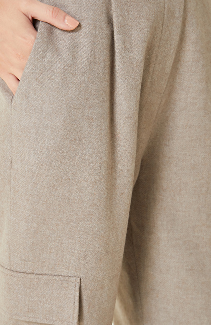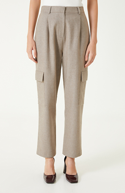 Bej Melanj Yün Karışımlı Kargo Cepli Pantolon