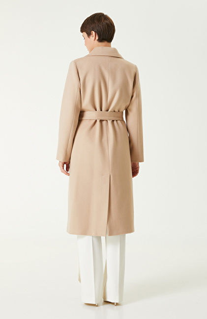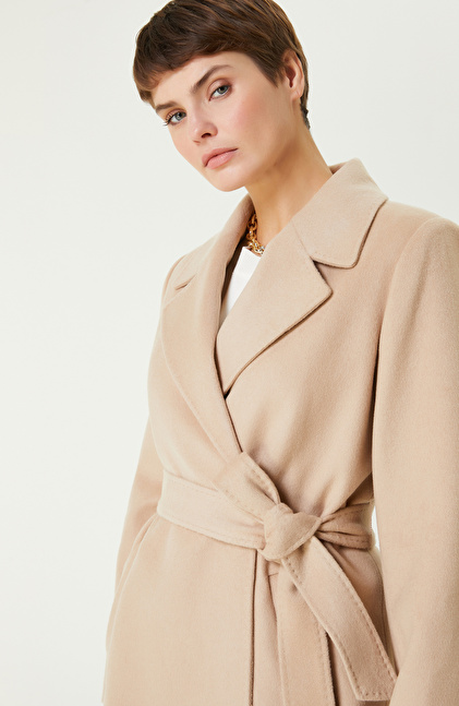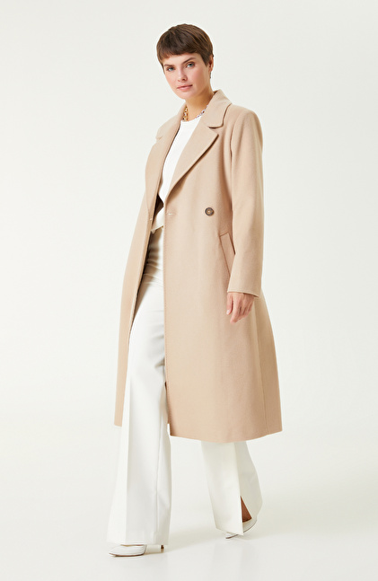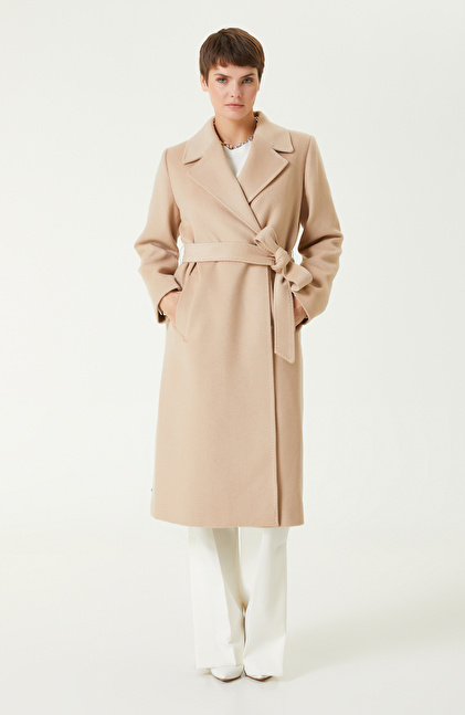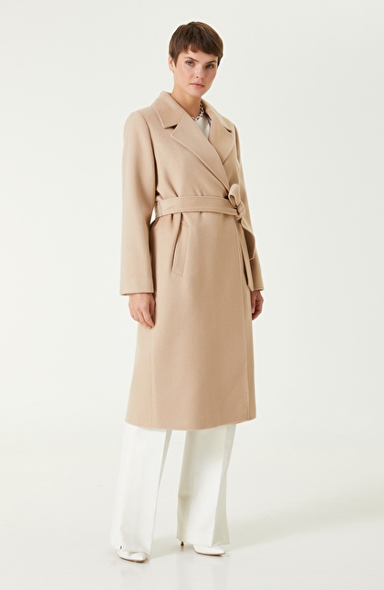 Bej Melanj Yün Karışımlı Manto
