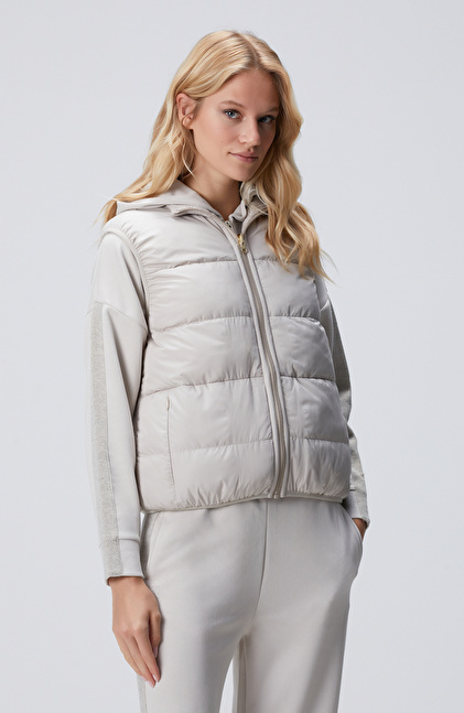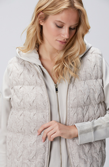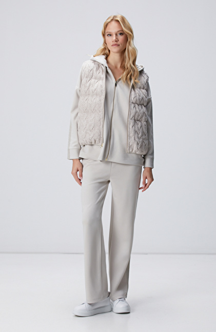 Bej Melanj Yün Karışımlı Triko Casual Yelek
