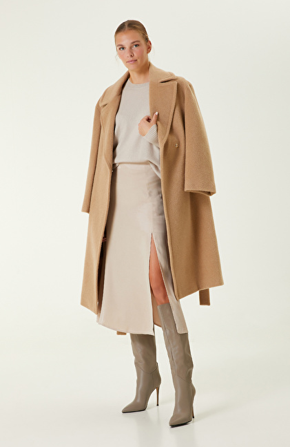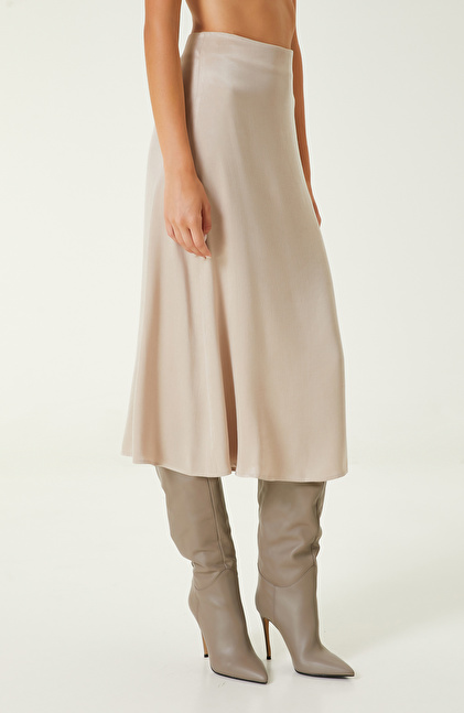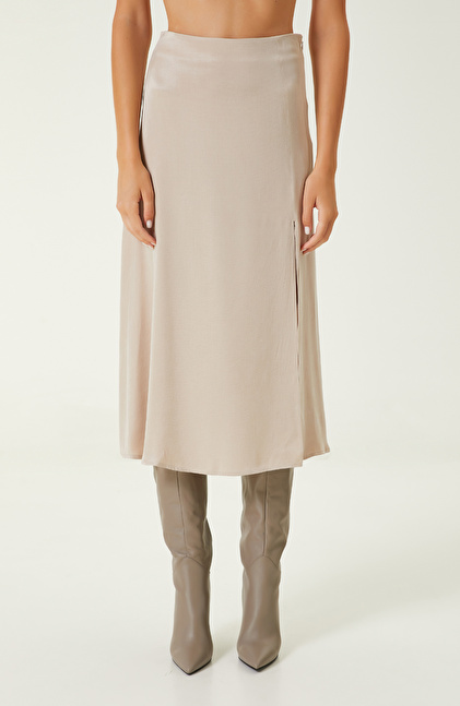 Gün içinde, özel günlerde ve ofiste kullanıma uygun Bej Midi Boy Etek, feminen ve minimal tarza sahip kadınlara hitap eder. NetWork Smart Casual koleksiyonunda yer alan etek, hem rahat hem de lüks yapısı ile öne çıkar. Sonbahar kış sezonunda kullanabilmeniz için kaliteli kumaşla üretilmiş olup aynı zamanda gün boyu rahat etmenizi de sağlar. Bej rengin özgün ve sofistike görünümü sayesinde kombinlerinize elegan bir dokunuş katar. Midi boyu ve yırtmaç detayı ile iddialı bir tasarıma sahiptir. Bej renk basic midi boy etek ile bej kazak, vizon topuklu çizme ve camel uzun kaşe kaban kombini yapabilirsiniz.