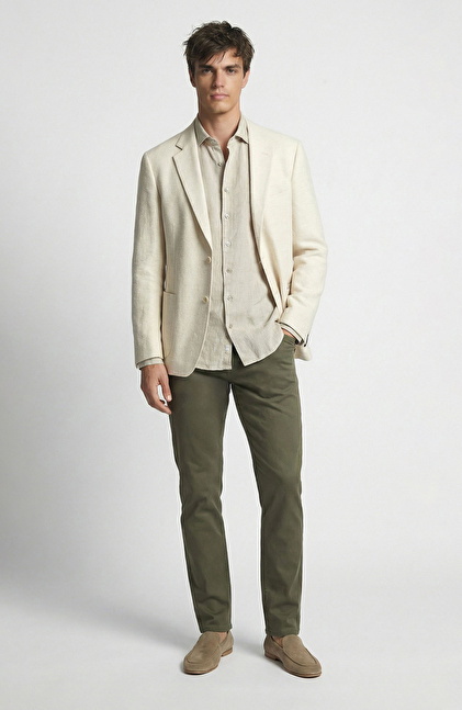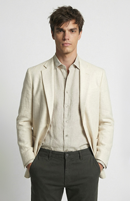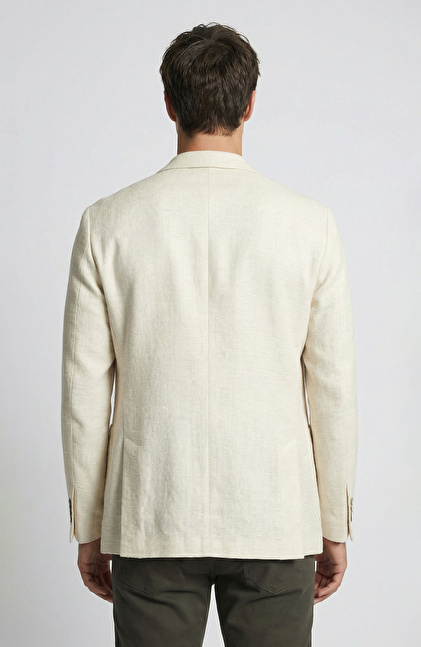 Bej Mono Yaka Jakarlı Dokuma Ceket