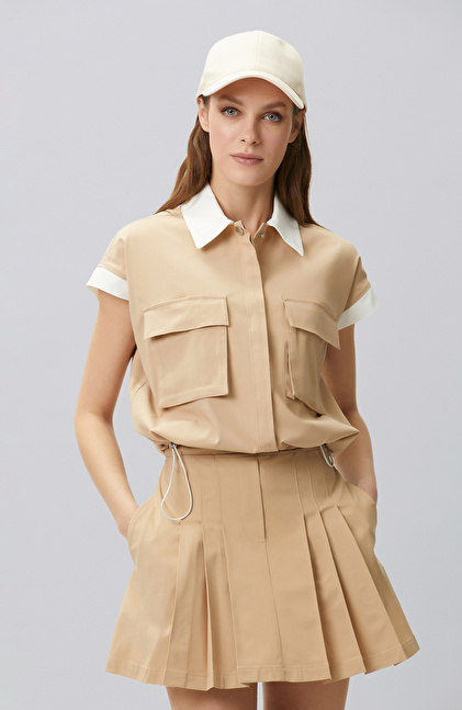 Bej N-tech Bel Büzgü Detaylı  Dış Gömlek