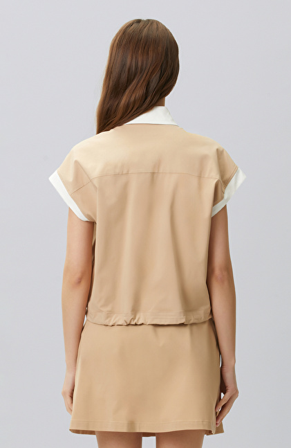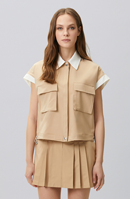 Bej N-tech Bel Büzgü Detaylı Dış Gömlek