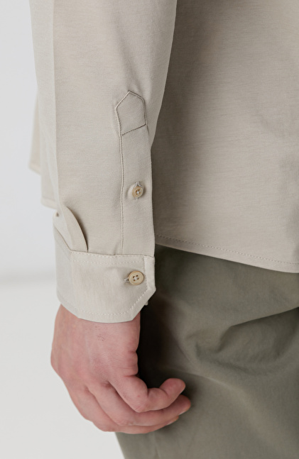Slim Fit; Gömlek Yaka; Uzun Kol; Örme Gömlek; Düz Renk; Cepsiz