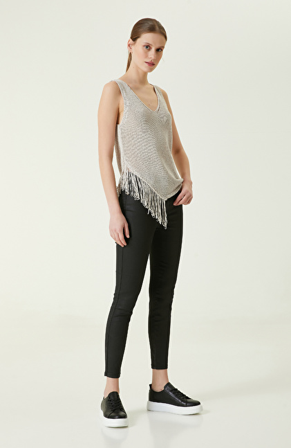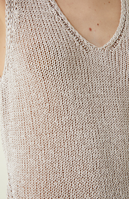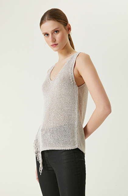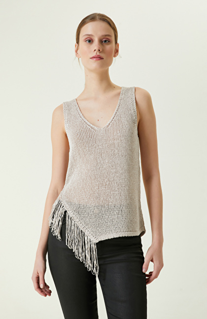 Bej Püsküllü Triko Atlet