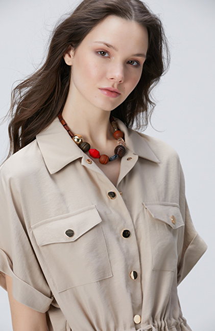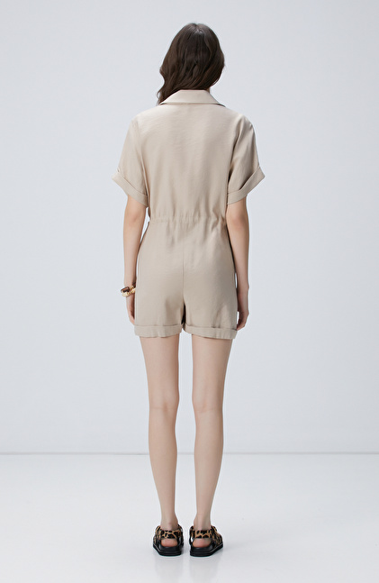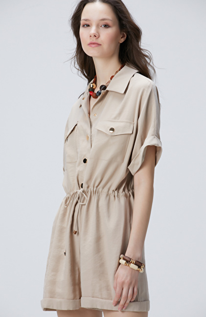 Bej Safari Şort Tulum