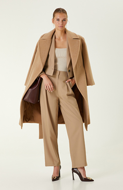 Yoğun iş hayatına sahip kadınların kurtarıcısı olan Bej Tek Düğmeli Blazer Ceket, ofis ortamının ciddi havasına uyum sağlar. Güçlü ve iddialı görünümü ile şehirli kadınlara hitap eden ceket, tarzınıza modern bir görünüm kazandırır. Basic tasarımıyla farklı parçalara uyum sağlar. Bej rengin sofistike görünümü ile kombinlerinize özgün bir dokunuşta bulunur. Crop kesime ve tek düğmeli tasarıma sahip olan ceket, hem yenilikçi görünüm sunar hem de ciddi tarzınızdan ödün vermemenizi sağlar. Yün içerikli kumaşı sayesinde kış sezonunda kullanıma uygundur. Bej ceket ile yüksek bel bej kumaş pantolon, siyah stiletto ayakkabı ve bordo kol çantası kombini yapabilirsiniz.