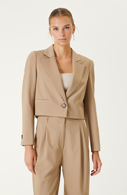 Bej Tek Düğmeli Blazer Ceket
