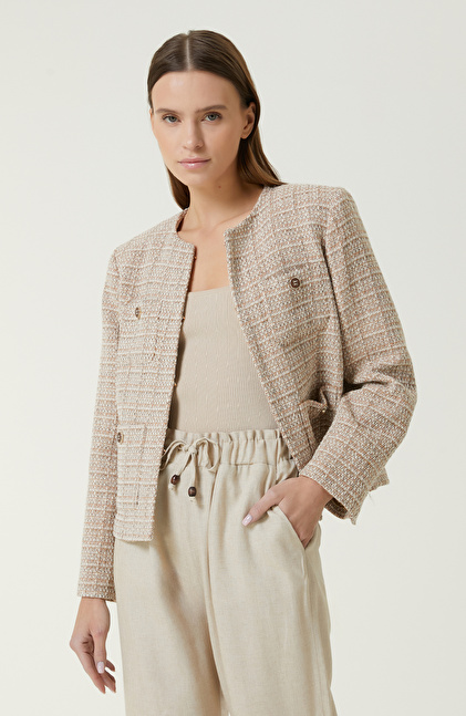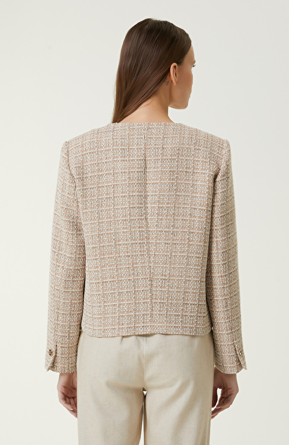 Regular Fit; Bisiklet Yaka; Desenli; Tüvit Ceket