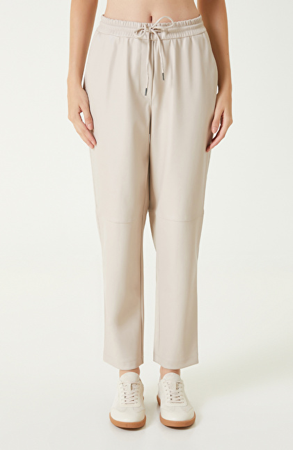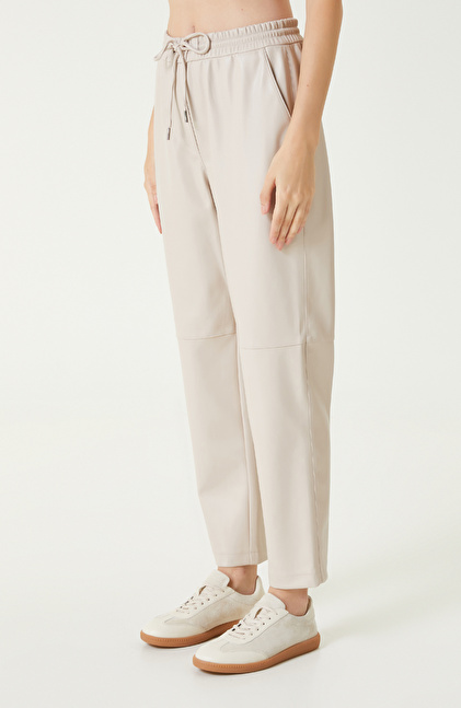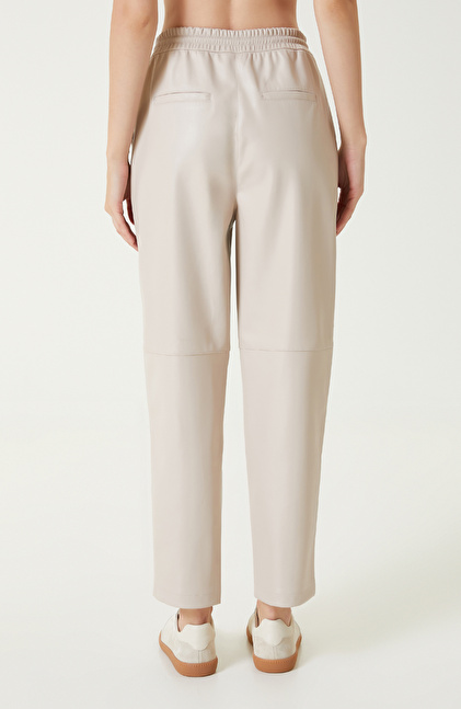 Bej vegan Deri Pantolon