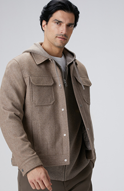 Bej Yün Karışımlı Mont