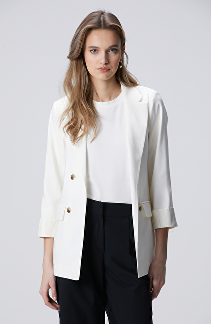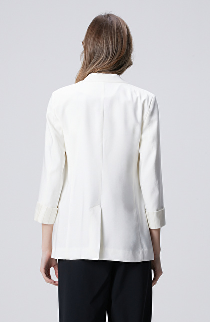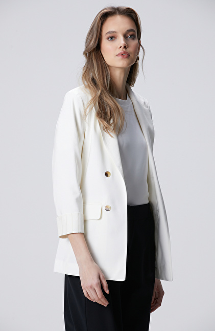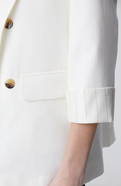 Beyaz Açık Kruvaze Kol Ucu Desenli Astarlı Ceket