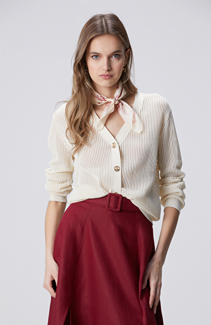 Beyaz Ajur Detaylı Hırka