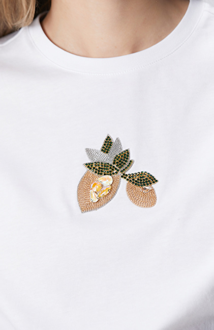 Beyaz Aplike Aksesuarlı T-shirt