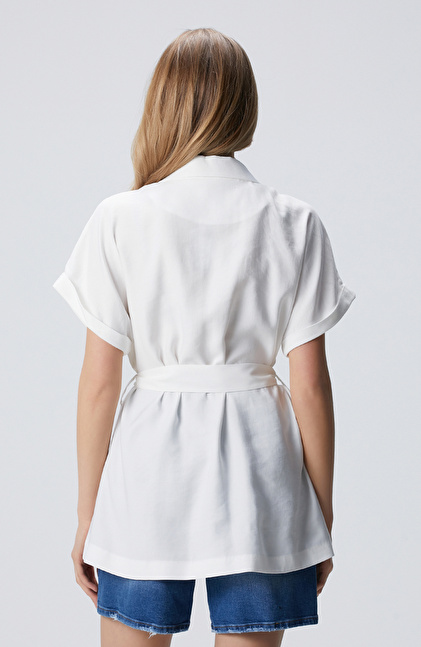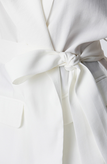 Beyaz Beli Kuşaklı Ceket