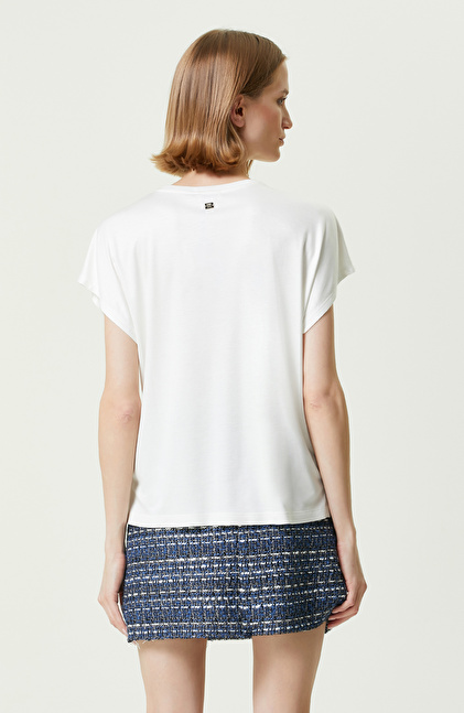 Beyaz Bisiklet Yaka Kısa Kollu T-Shirt