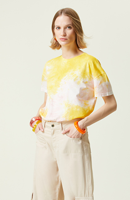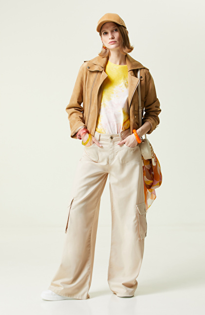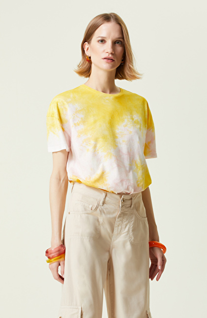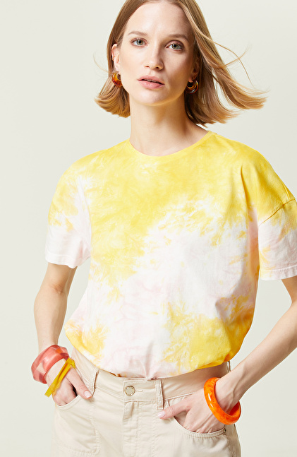 Zamansız tasarımları kusursuz desenlerle buluşturan NetWork, kombinlerinde canlı renkleri tercih eden cesur kadınların vazgeçilmezlerinden oluyor. Sarının en canlı tonlarını beyazla harmanlayan batik desen, günlük kombinlerinize dinamik bir hava katıyor. % 100 pamuklu kumaşıyla da yaz aylarının en sıcak günlerini daha konforlu geçirmenize yardımcı oluyor. Feminen bir duruş için ideal bisiklet yaka tişörtün basic fit kesimi, günün her anında konforlu hissetmenizi sağlıyor. Trendleri takip eden kadınların sıkça tercih ettiği batik desenlerin canlı ve göz alıcı stiliyle bol paça krem rengi tonlarında kumaş pantolonları birlikte kullanarak kombinlerinizi oldukça iddialı hale getirebilirsiniz. Yüksek kaliteli pamuklu t-shirt ile günün enerjisine en iyi şekilde ayak uydurabilirsiniz.