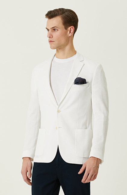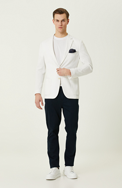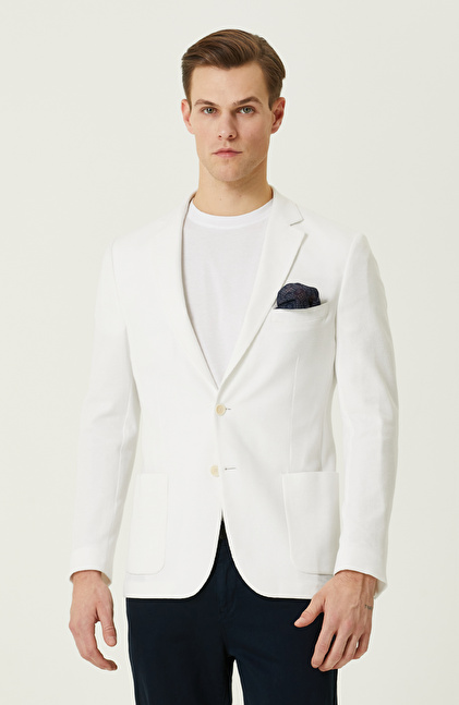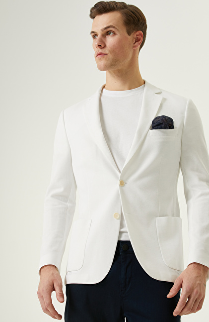 Slim Fit; Mono Yaka; Uzun Kol; Pamuk Karışımlı; Örme Ceket; Armürlü; Aplike Cepli