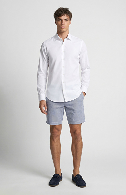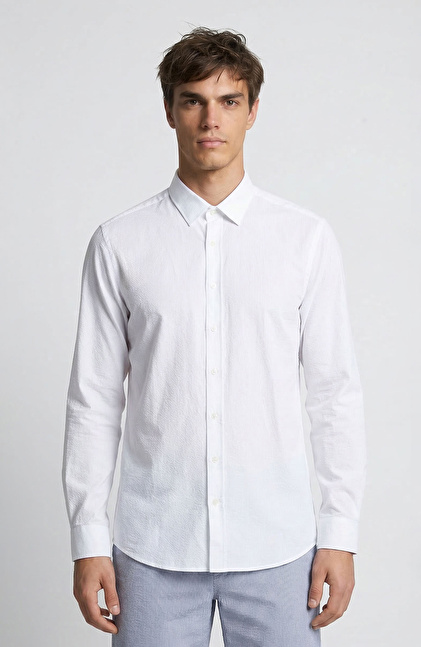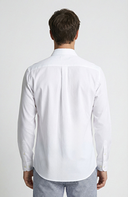 NETWORK Casual Beyaz Çizgili Gofreli Gömlek