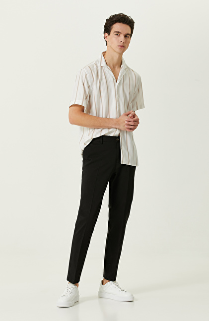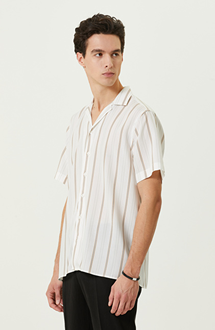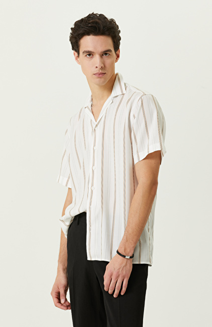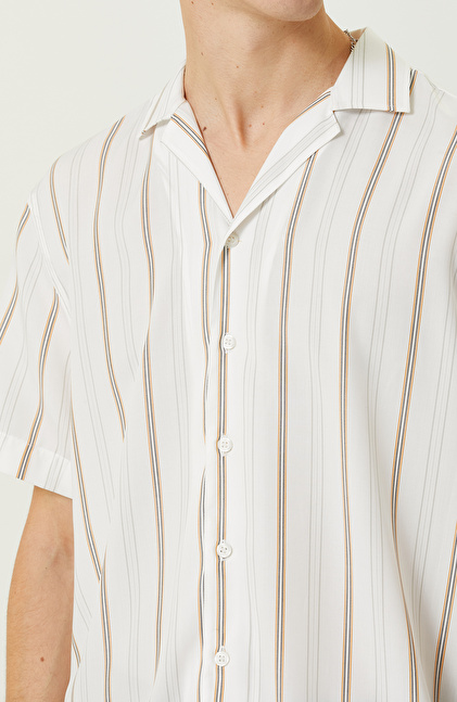 Beyaz Çizgili Kısa Kollu Gömlek